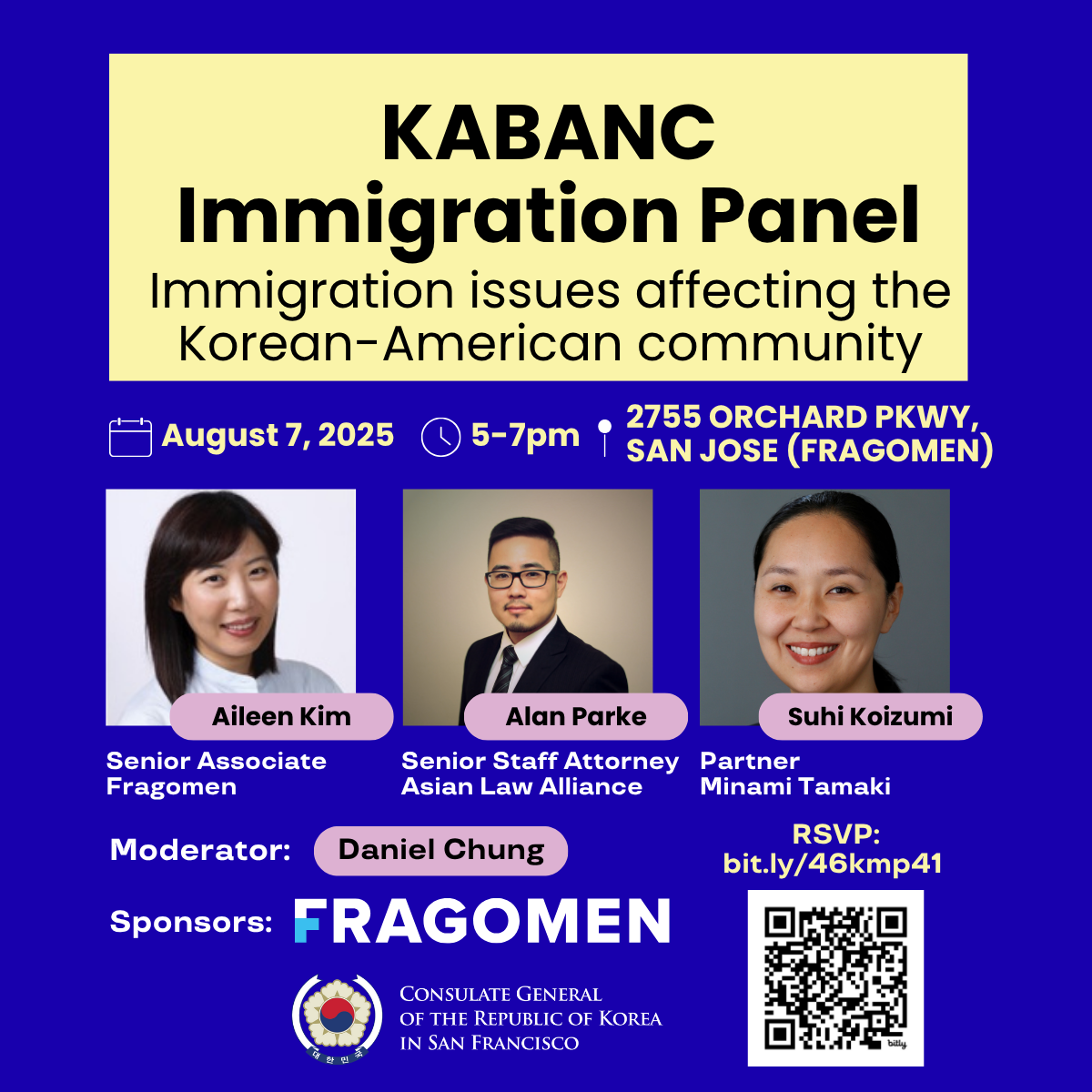 KABANC Immigration Panel Thursday, August 7, 2025 5:00 PM 7:00 PM Fragomen 2755 Orchard Parkway San Jose, CA, 95134 United States (map) Google Calendar ICS