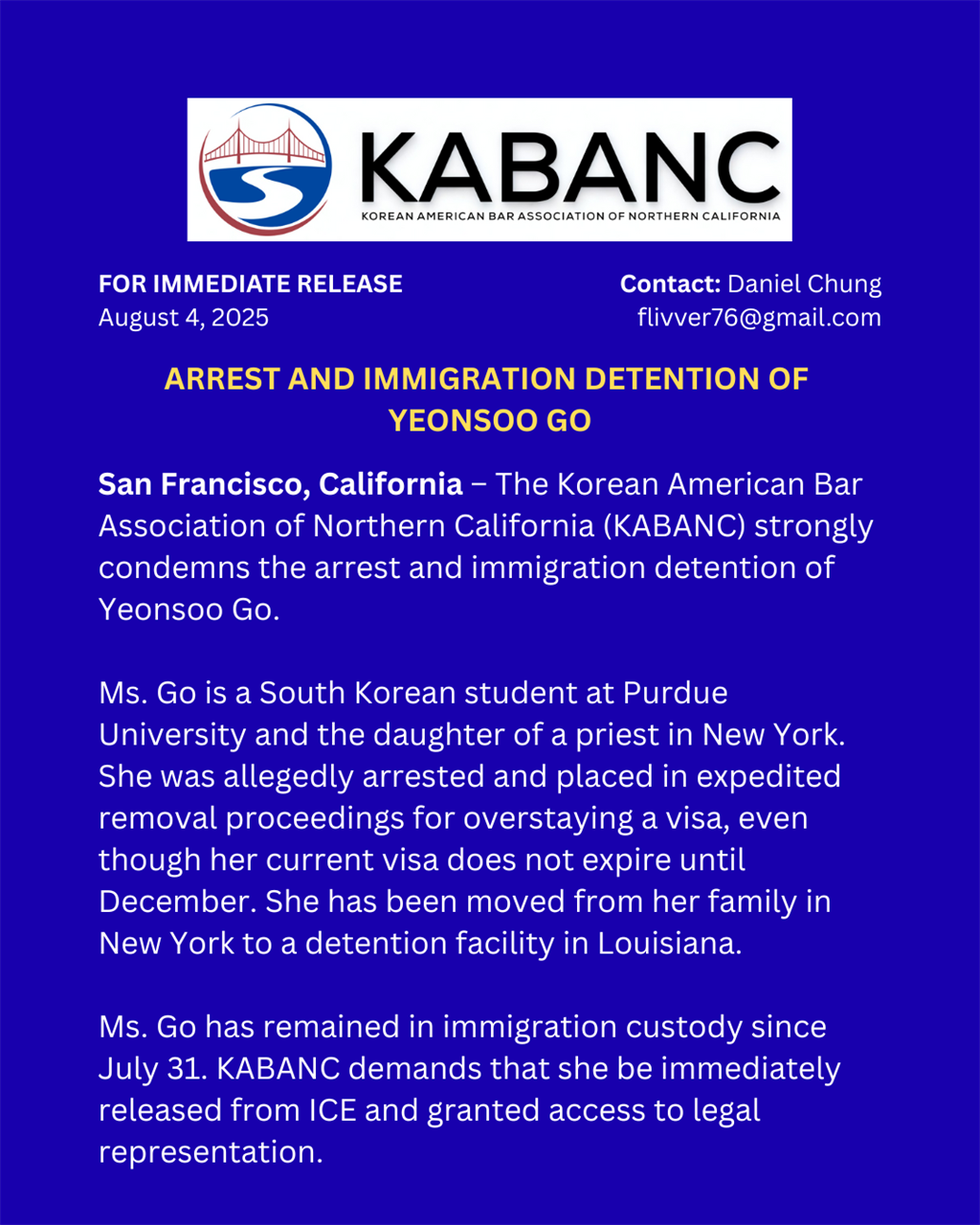 KABANC Statement Regarding the Arrest and Immigration Detention of Yeonsoo Go Aug 4 Written By David Akinyemi David Akinyemi